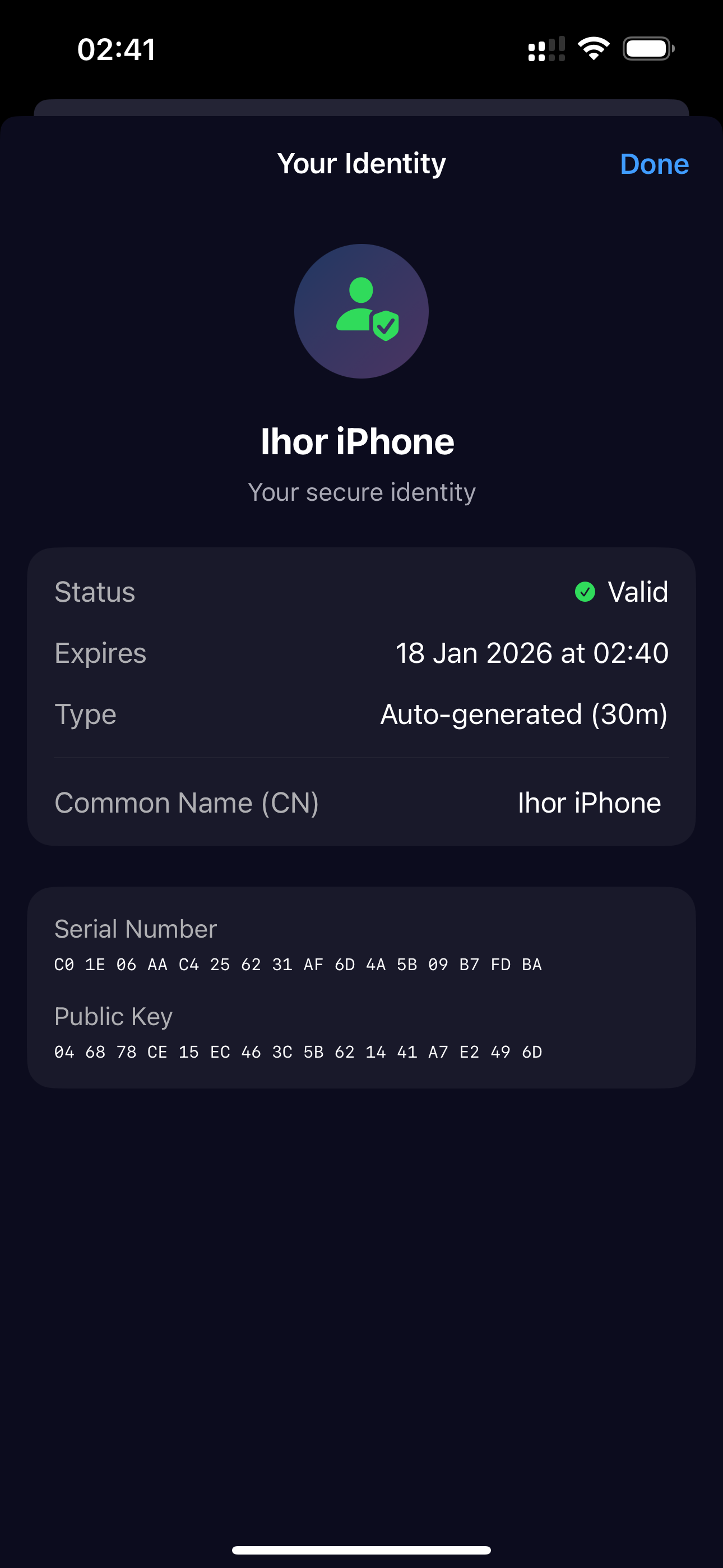Інфраструктура PKI X.509. Єдиний додаток як в часи IRC та XMPP забезпечує доступ до всіх серверів сумісних з X.509 таких як CHAT, LDAP, OCSP, TSP, DNSSEC, CMP, EST. Клієнт підримує довільну кількість ключів та всі сервери інфраструктури PKI X.509.